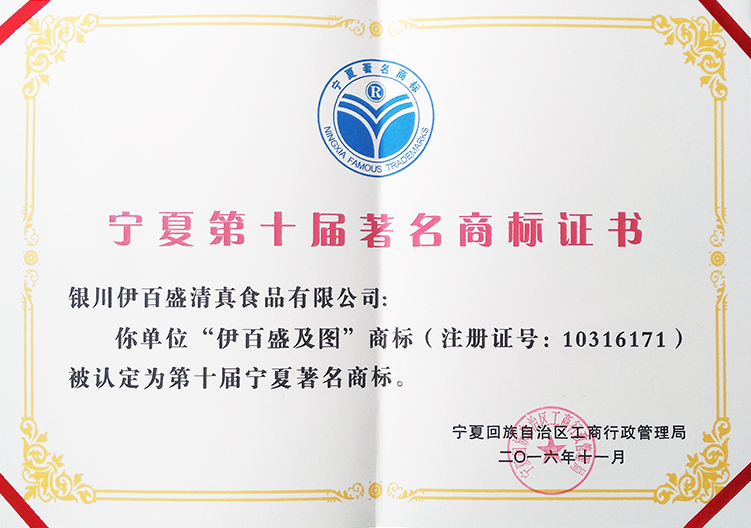 寧夏第十屆著名商標