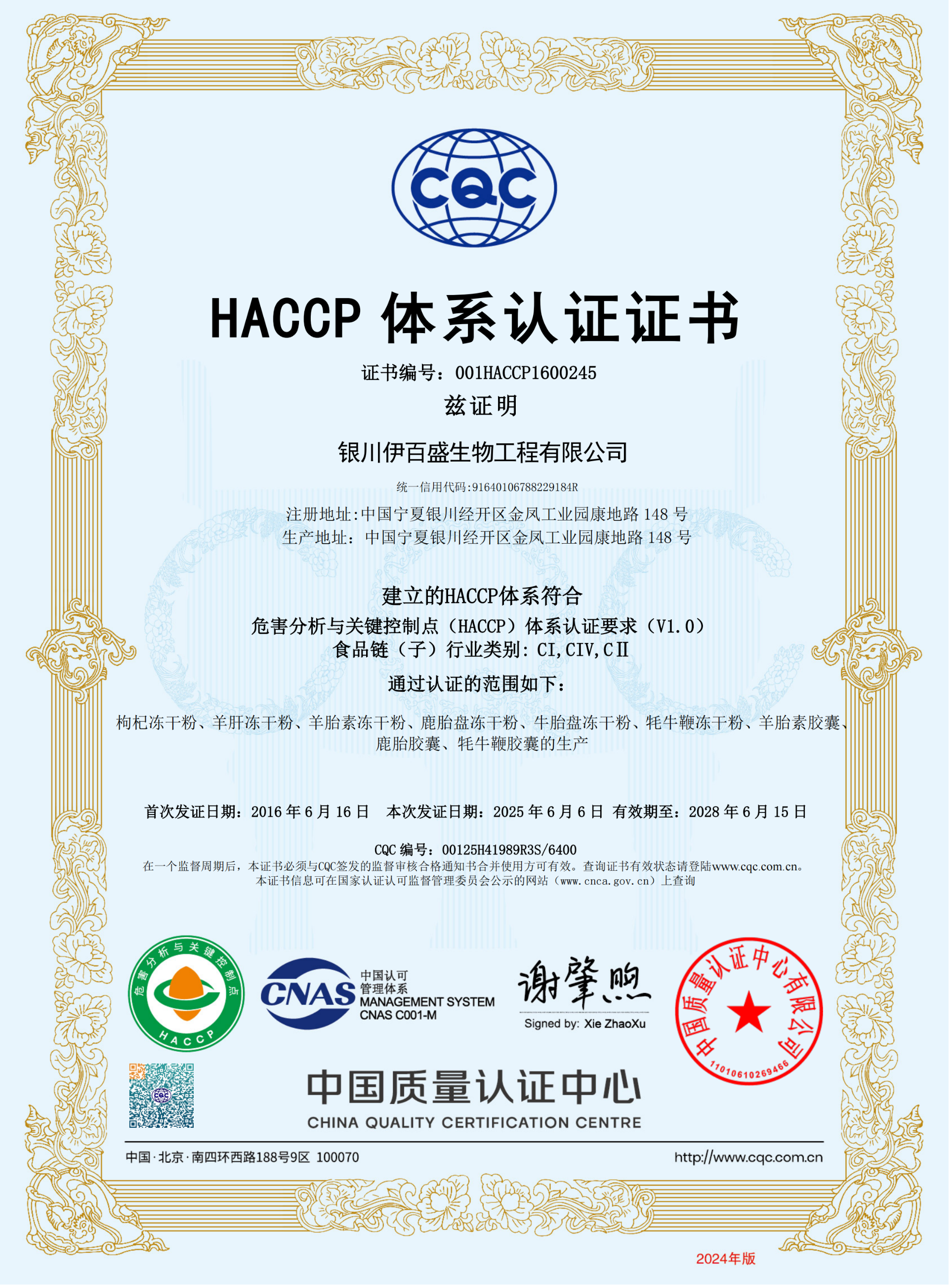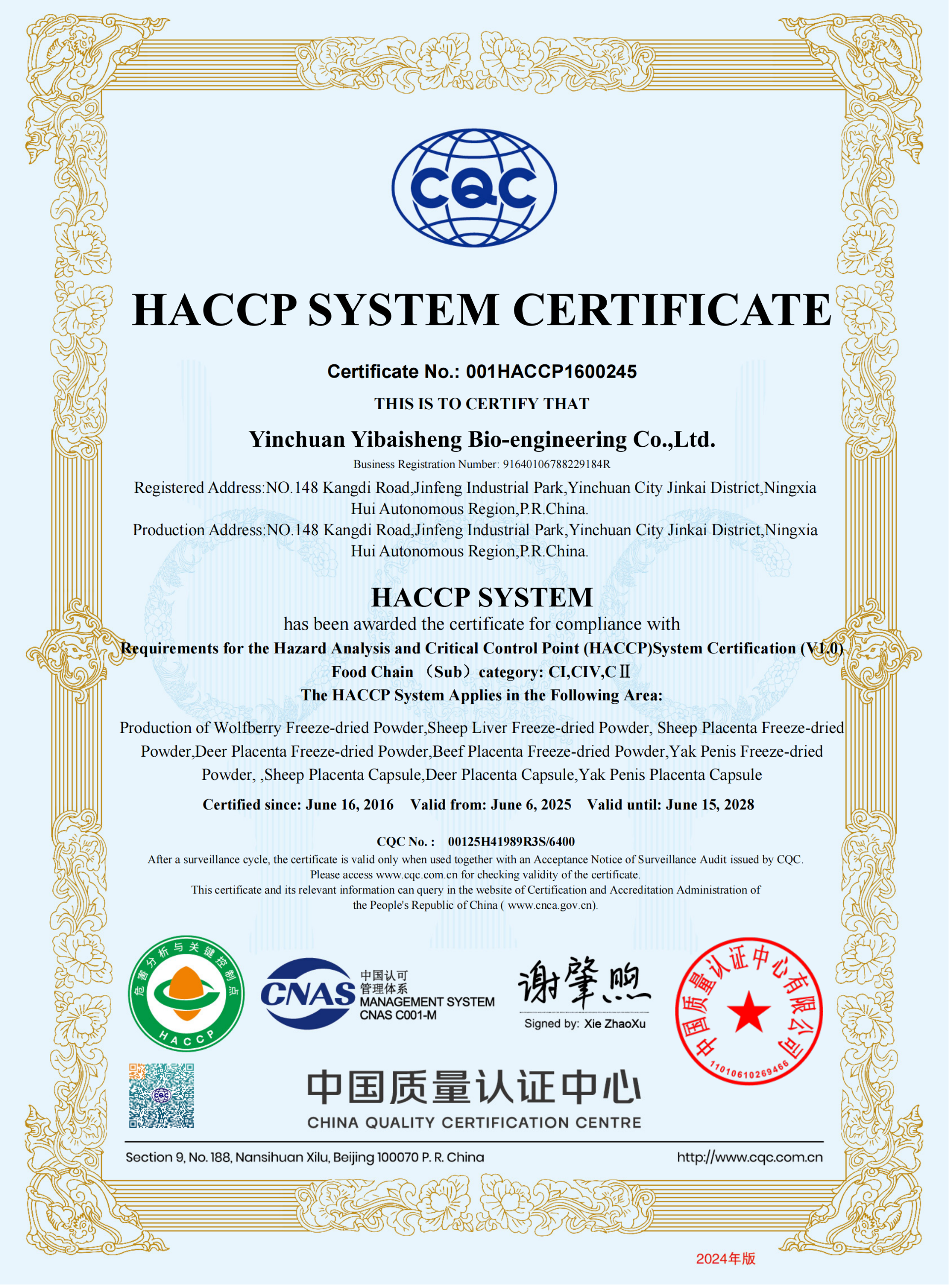 HACCP證書中文版正本