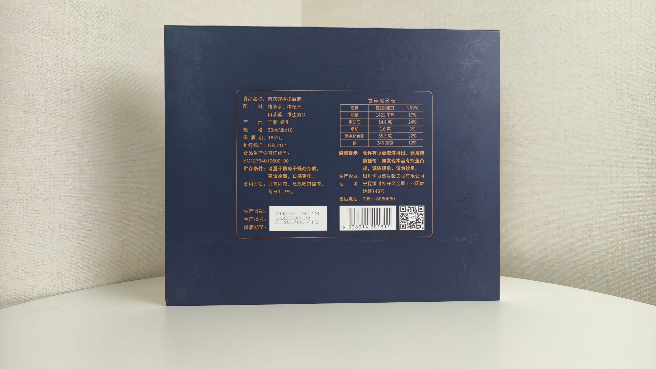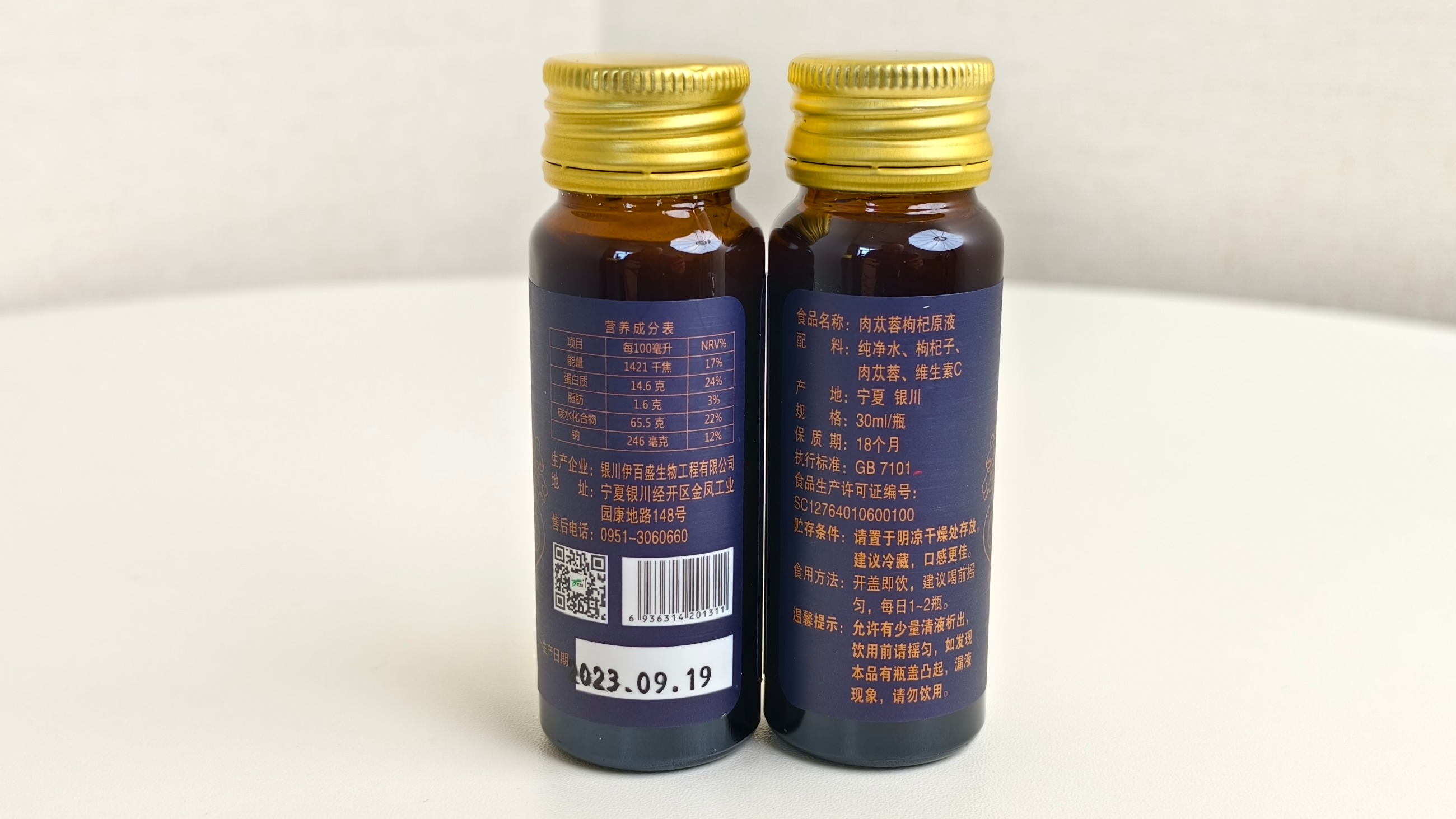 【食品名稱】肉蓯蓉枸杞原液肉蓯蓉( 荒漠)藥食同源試點產品【配料】純凈水、枸杞子、肉蓯蓉(帶鱗葉的肉質莖)【規格】30ml/瓶【食用方法及食用量】肉蓯蓉(帶鱗葉的肉質芝)使用量:≤6克/天,每日1-2瓶,開蓋即飲,建議喝前搖勻【不適宜人群】孕婦、哺乳期婦女及嬰幼兒【貯存方法】請置于陰涼干燥處存放,建議冷藏,口感更佳【保質期】18個月【執行標準】GB 7101【食品生產許可證編號】SC1276401