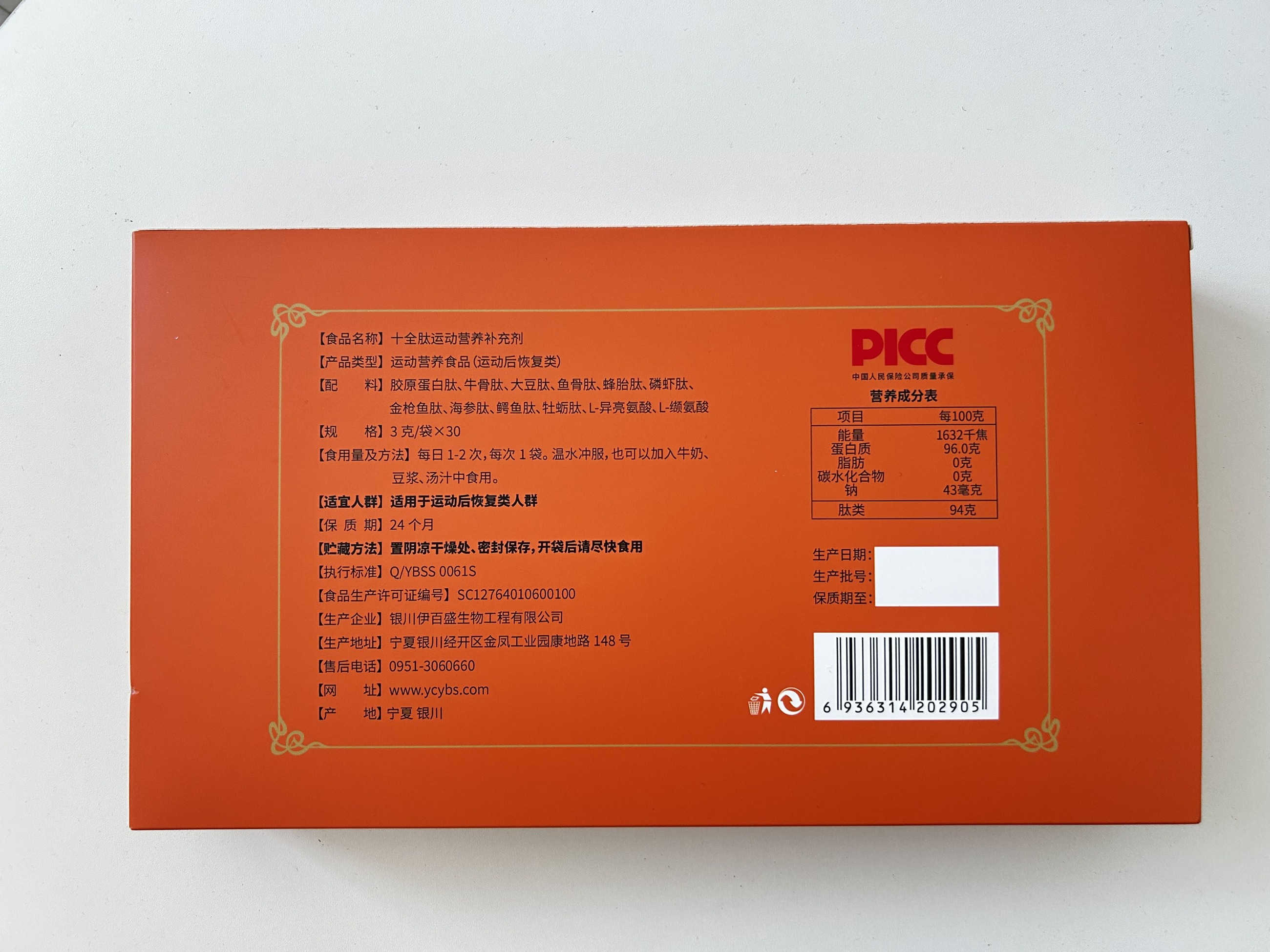 【食品名稱】十全肽運動營養補充劑